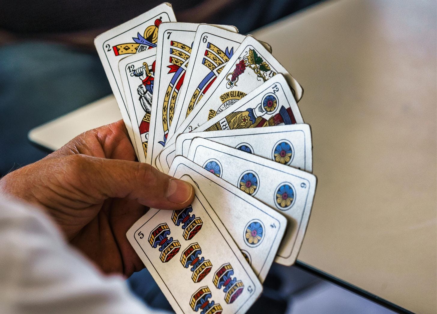 Colloquially, fermino refers to a strategy in the card game, Briscola, wherein a player will signal their partner to lay down a lower-value card to slow the momentum so they can stop and regroup.