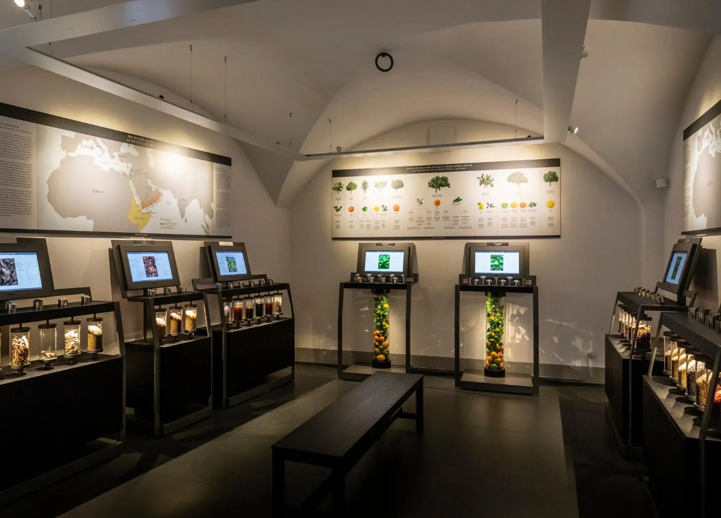 A garden and terrace contain nearly 100 aromatic flowers and plants. The Osmorama scent library offers visitors a whiff of ancient and modern raw materials and synthetic recreations along with historical context, interactive maps and video installations.