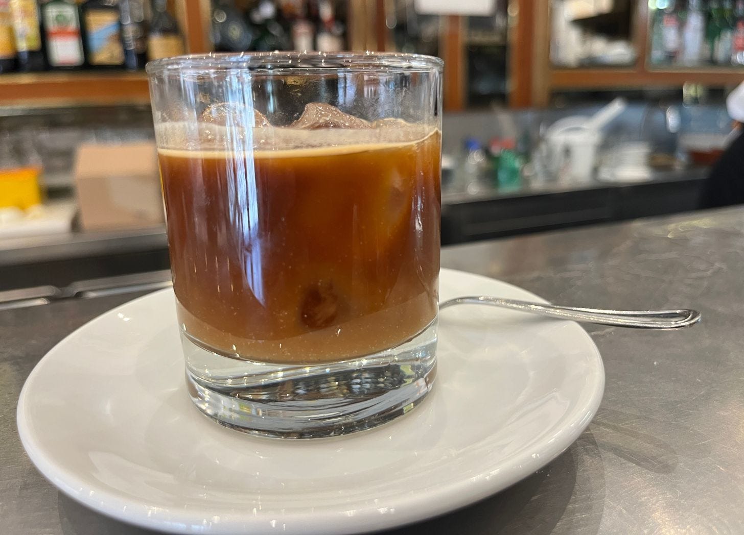Caffè freddo is usually served in a shot-glass and the serving size is longer than a typical two-sip or ristretto espresso. You can ask for ice, but they’ll just say “è gia freddo.” It’s already cold. If you’re lucky, you might get a few cubes.