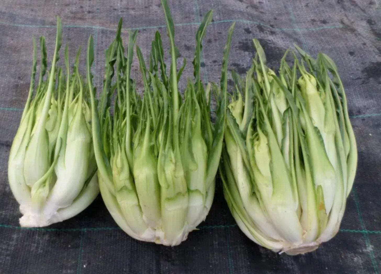 Catalonian chicory sprouts as a bulb, much like fennel, and produces shoots and leaves. The leaves have serrated edges and an earthy, bitter flavor akin to dandelion greens and arugula.