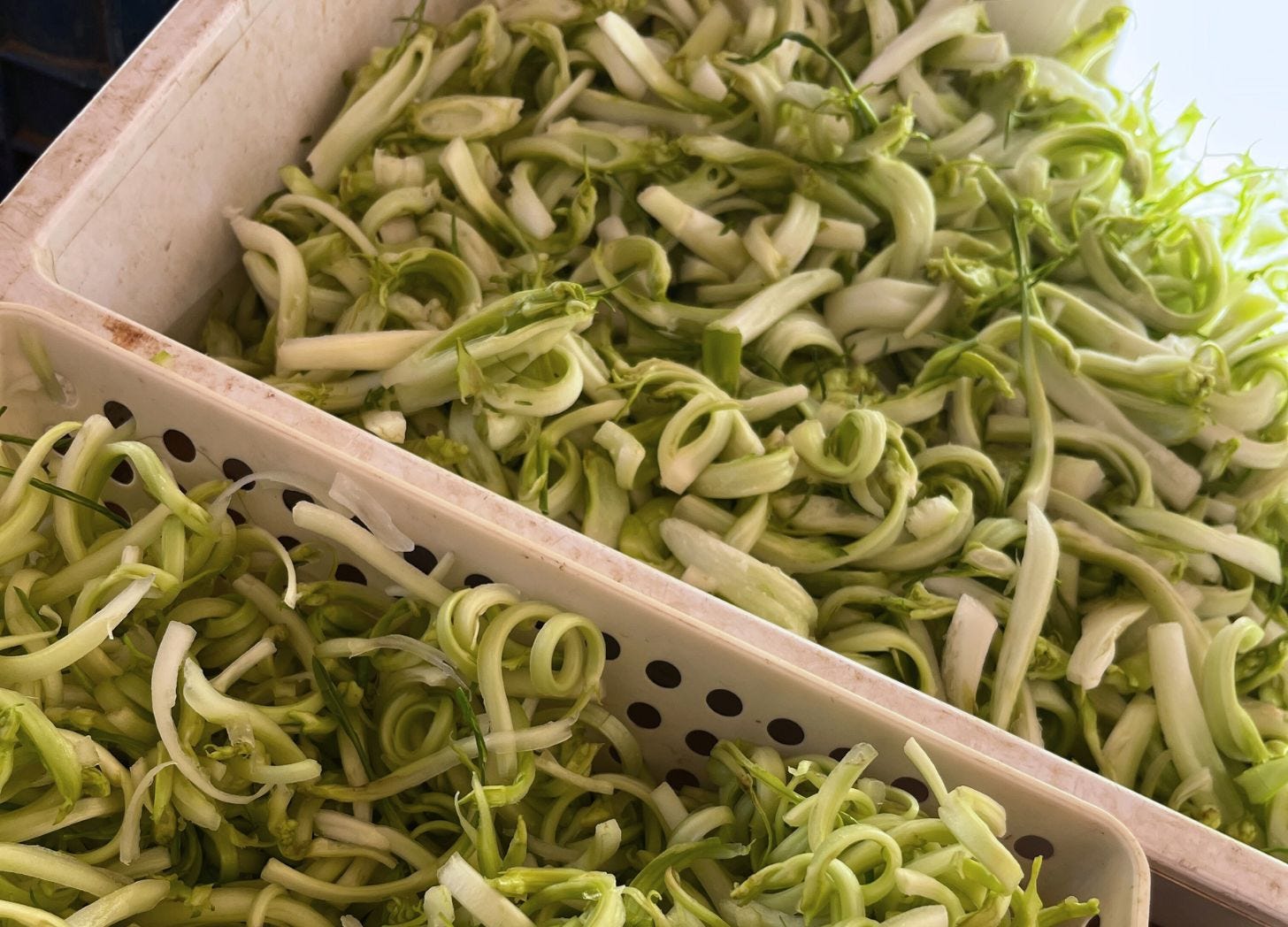 A member of the chicory family, puntarelle refers to specifically the inner shoots of the Catalonian chicory.