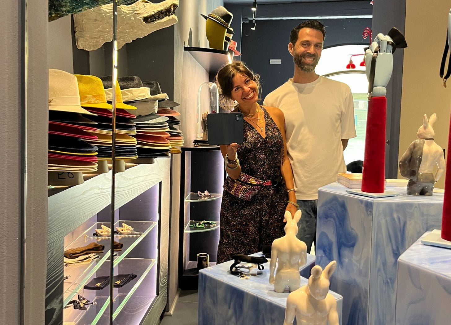 His brand, Mani del Sud, began with handmade bowties and has since expanded to include hats, scarves, and shirts, all intricately crafted by hand.