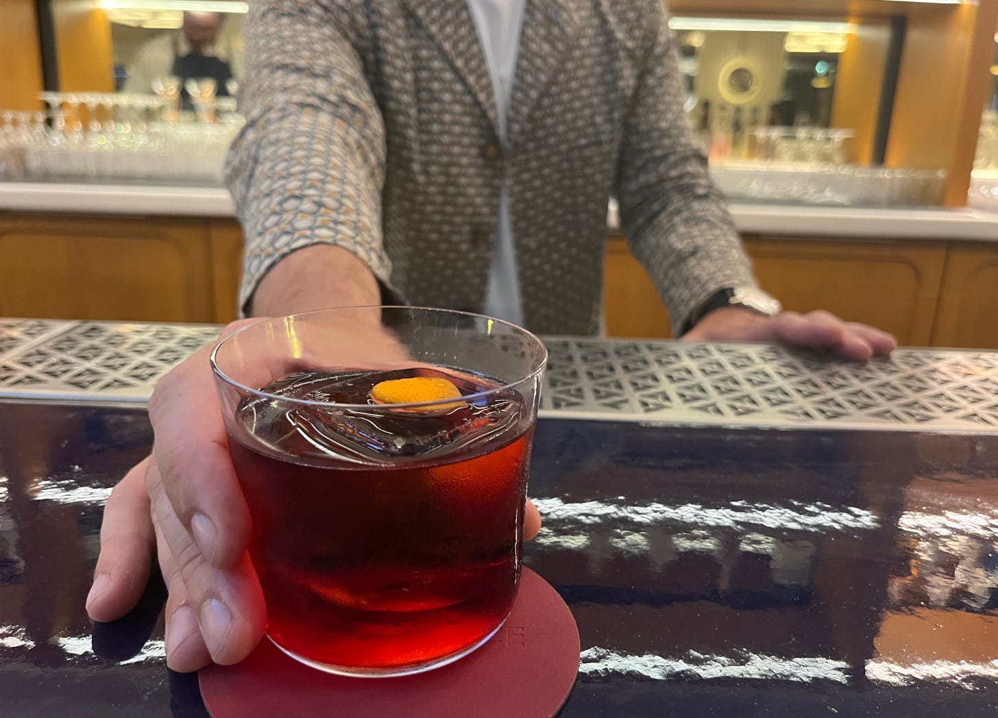 He cites the Negroni. While it wasn’t created at a hotel necessarily, but it was born out international travel, a lot of drinking in hotels (Count Camillo Negroni liked a stiff one!), and flavors plucked up along the way.